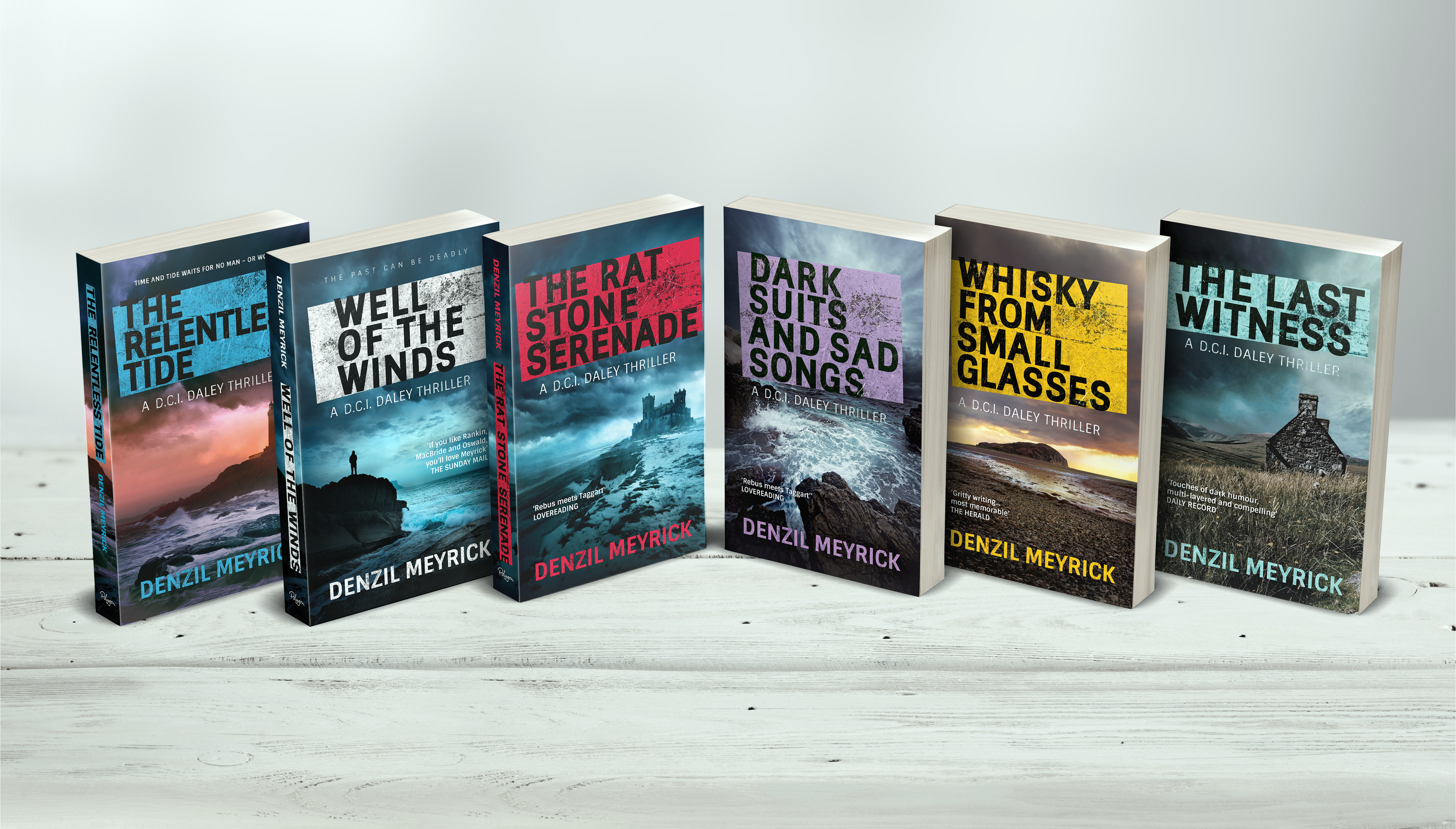 Cover designs for Denzil Meyrick's DCI Daley series of books.